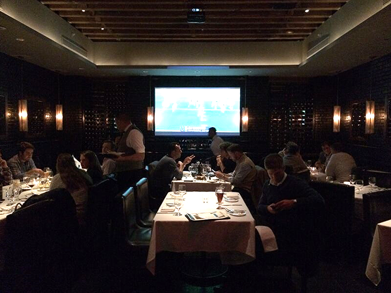 For every Monday Night Football broadcast, American Cut invites guests to dine and drink downstairs in the Morrison Room, an opulent event space with its own bar, projector screens and surround sound. With dark brick walls, dim lighting and comfortable leather chairs and banquettes, the room is, in a word, awesome.